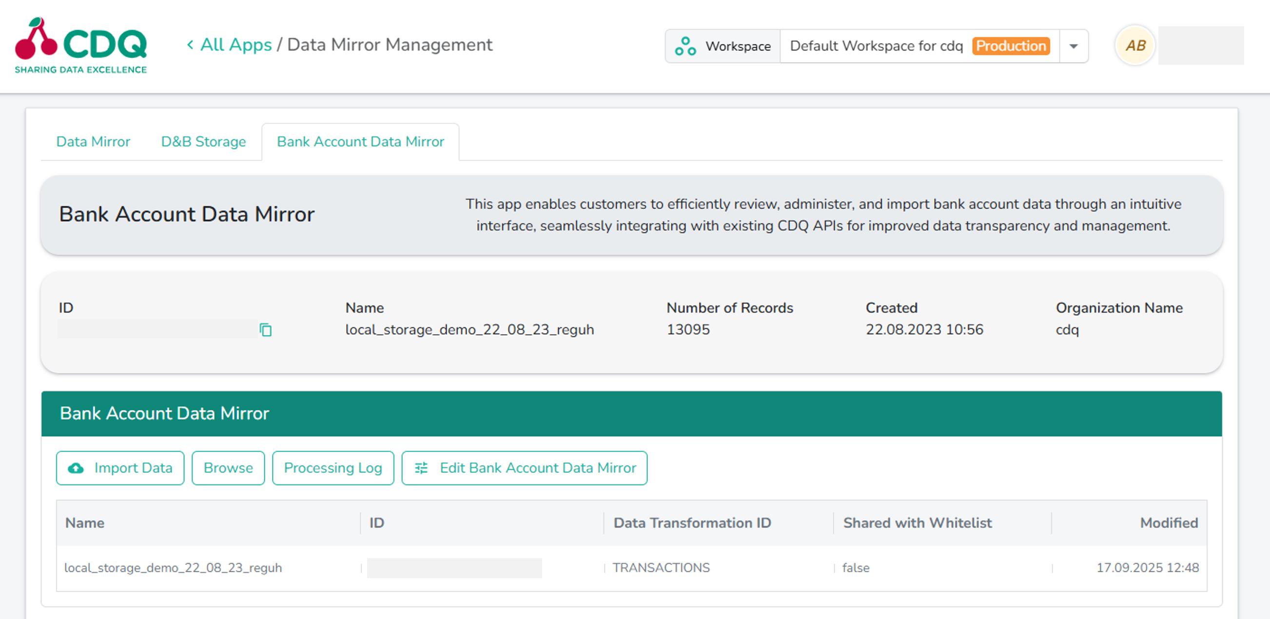 Once uploaded, the payment data is stored in the CDQ Bank Account Data Mirror, which can be accessed via the CDQ Cloud Apps under this link.